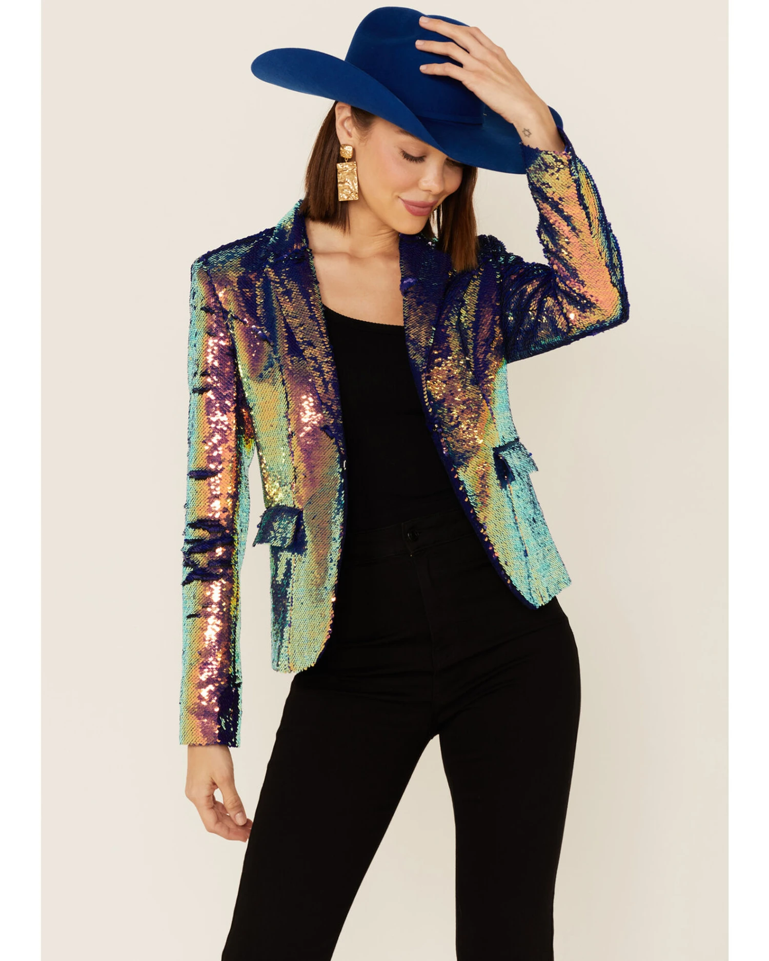 Be the first to review “Any Old Iron Women’s Oil Slick Sequin Blazer Jacket” Cancel reply