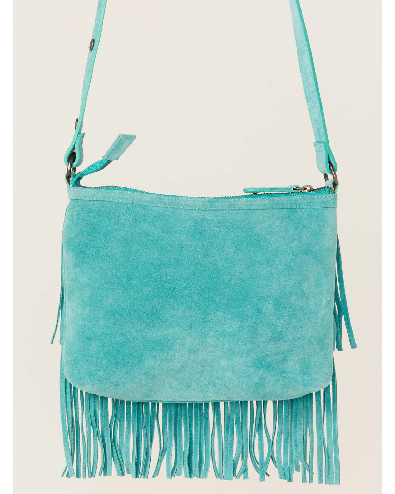 - Tiered suede fringe details