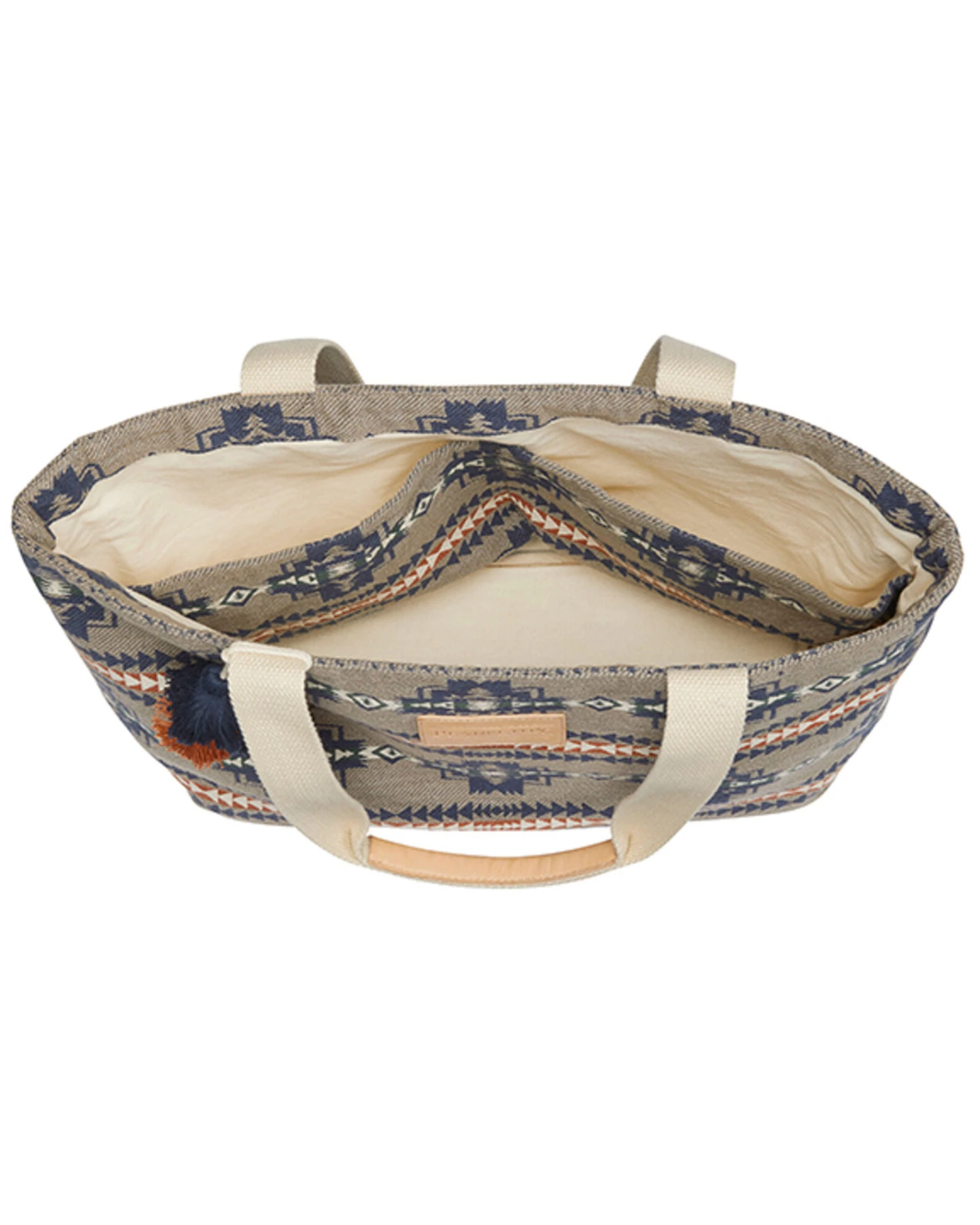 - Leather-trimmed carrying handles with tassels