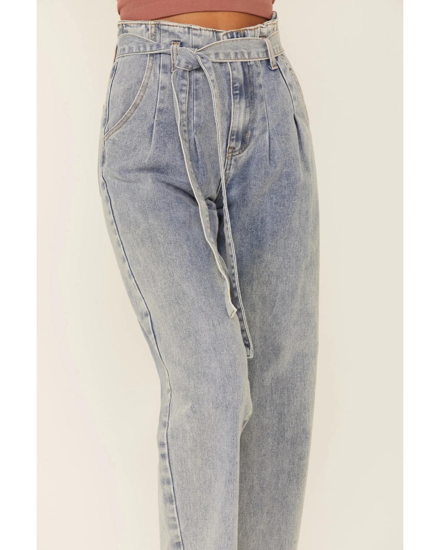 Wishlist Women’s Acid Wash Tie Waist High Rise Jeans